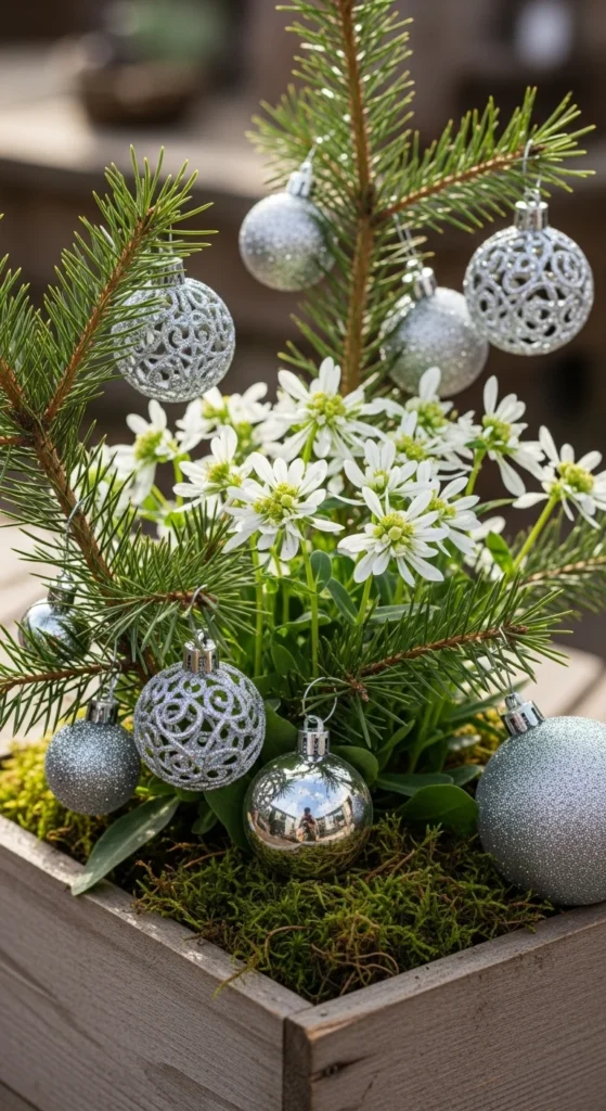 This airy plant adds a snow-like effect to arrangements. Its tiny white blooms soften bold reds and greens. Use it as filler in containers or bouquets. It thrives indoors with bright light and light watering, making it a subtle way to add festive brightness.