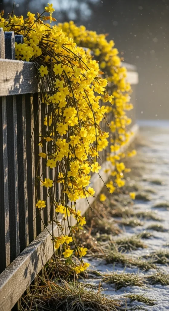 Winter jasmine blooms when most plants rest, offering cheerful yellow flowers in the chill. Train it along fences or trellises for garden color during cold months. Its gentle brightness reminds you that even in winter, life continues to grow and glow.