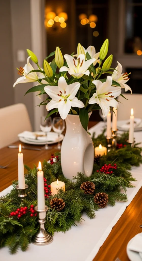 White lilies symbolize peace and grace—perfect for winter celebrations. Their large blooms and fragrance make them a stunning centerpiece. Mix them with pine and silver accents for a serene holiday vibe. Keep them away from heat and drafts for longer-lasting blooms.