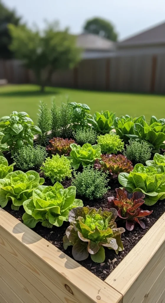 A single 4×4 raised bed is one of the best starting points for small yards. It fits tight spaces while keeping all plants within arm’s reach.
