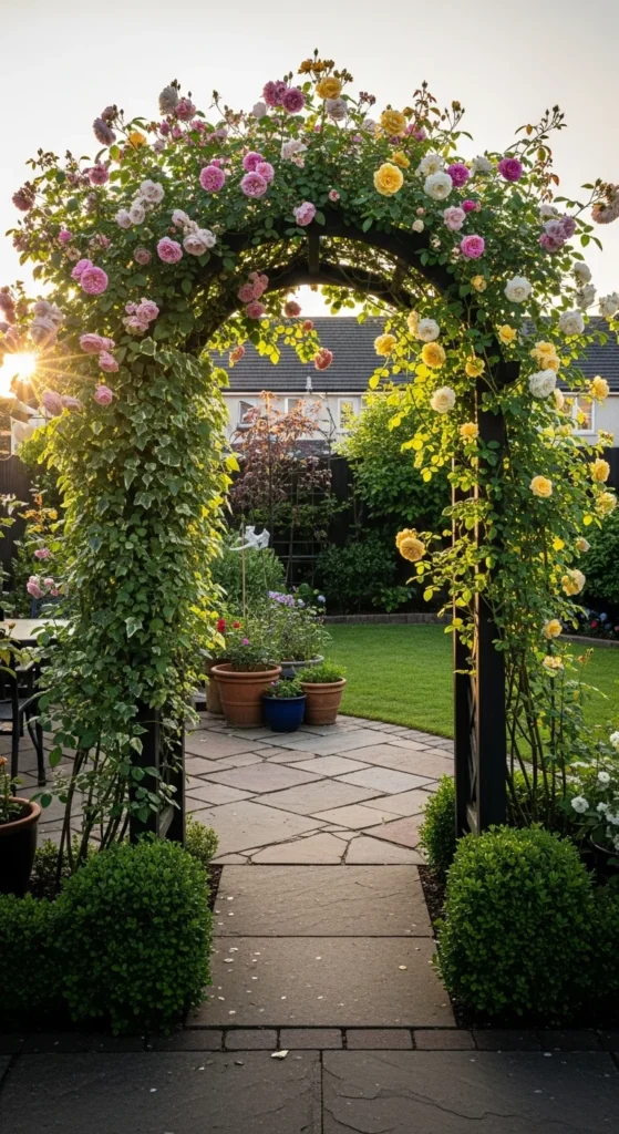 Garden arches create visual depth.