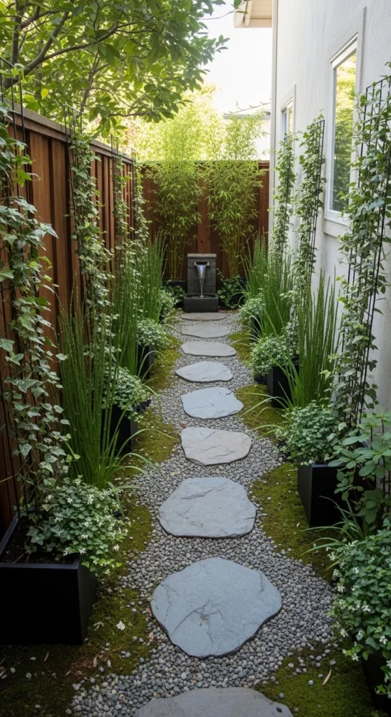 Side yards often sit unused. Add stepping stones and vertical planters.