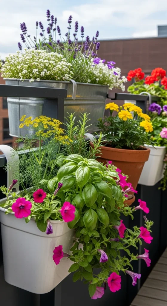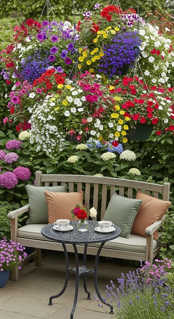 Hanging baskets add color without using ground space. They suit fences, pergolas, and balcony rails. Lightweight baskets reduce strain on hooks.