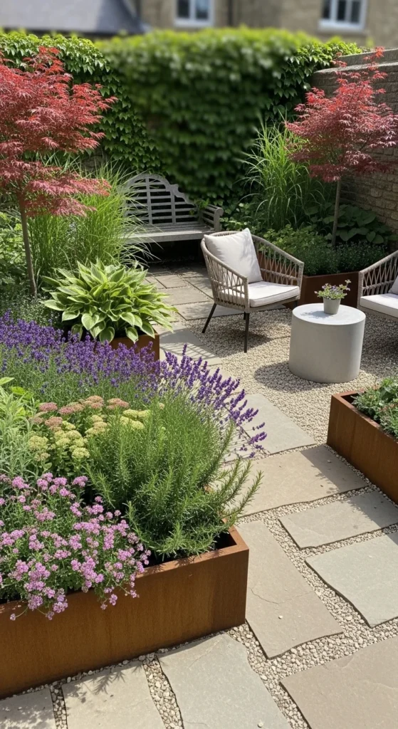 Zoning breaks small gardens into mini areas. One zone for seating. One for planting. One for storage. Use planters or changes in ground cover to mark each area.