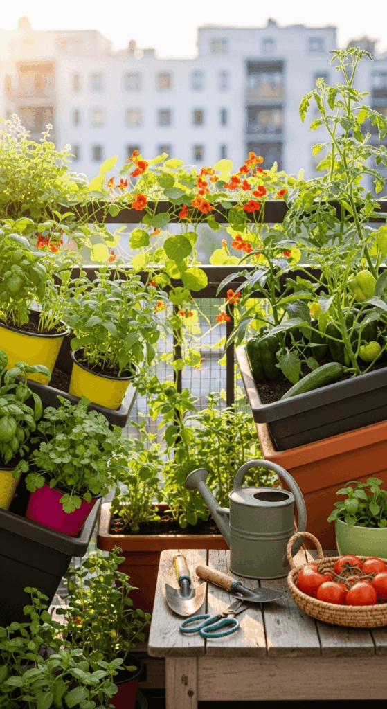 A practical budget move is buying only a few strong large containers for anchor crops and using cheaper lightweight pots for the rest. This gives stability without making the full garden too heavy or too expensive. If the balcony is very exposed, cluster containers so they block wind for each other a bit.