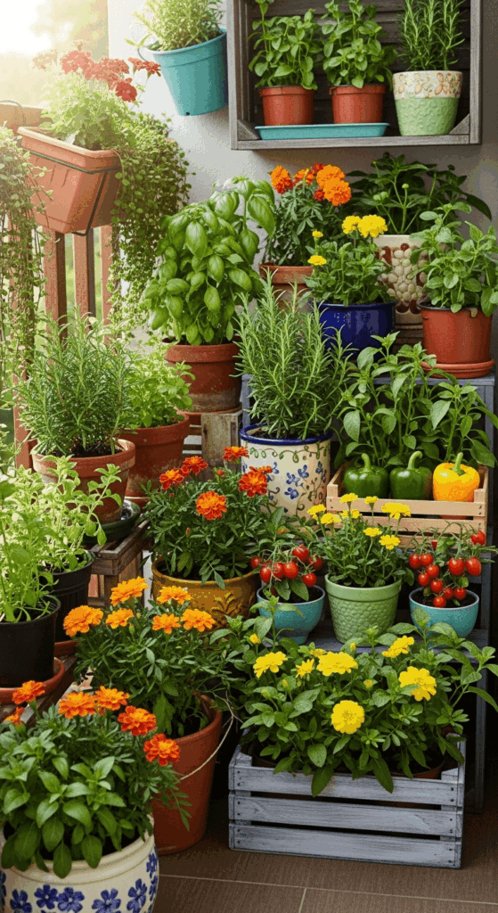 A simple combo might be basil with tomatoes, parsley with marigolds, or chives near leafy greens. Marigolds add color and may help distract some pests. Herbs also bring strong scent and practical kitchen use, which makes mixed containers feel more rewarding than a pot with one crop alone.