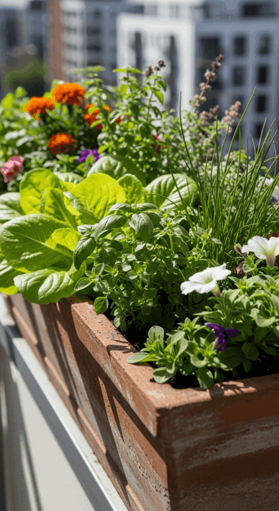 Window boxes are one of the best tools in small space container gardening because they use edges instead of floor area. Balcony rails, porch ledges, and sunny windows can all support a long narrow planter that adds real growing room without blocking movement.