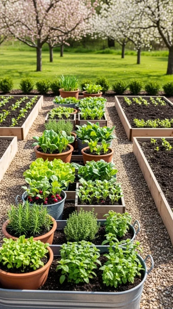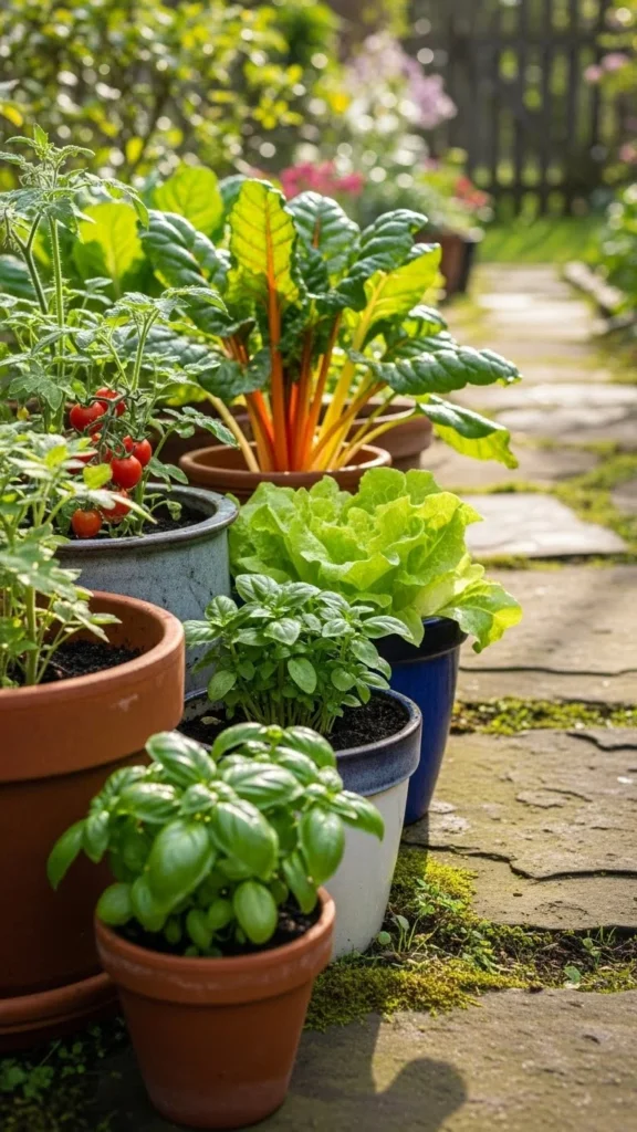 Containers fill gaps where beds won’t fit. Place pots along edges, corners, or patios. Herbs, peppers, and greens grow well in containers.