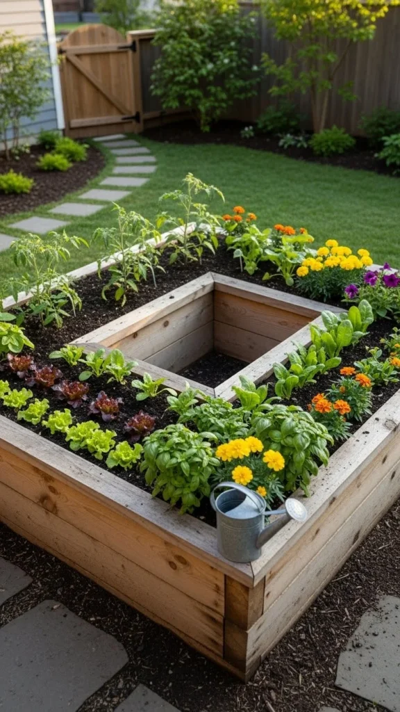 Corners often sit unused. Triangular or curved beds fit neatly into these areas. Grow herbs or compact vegetables here.