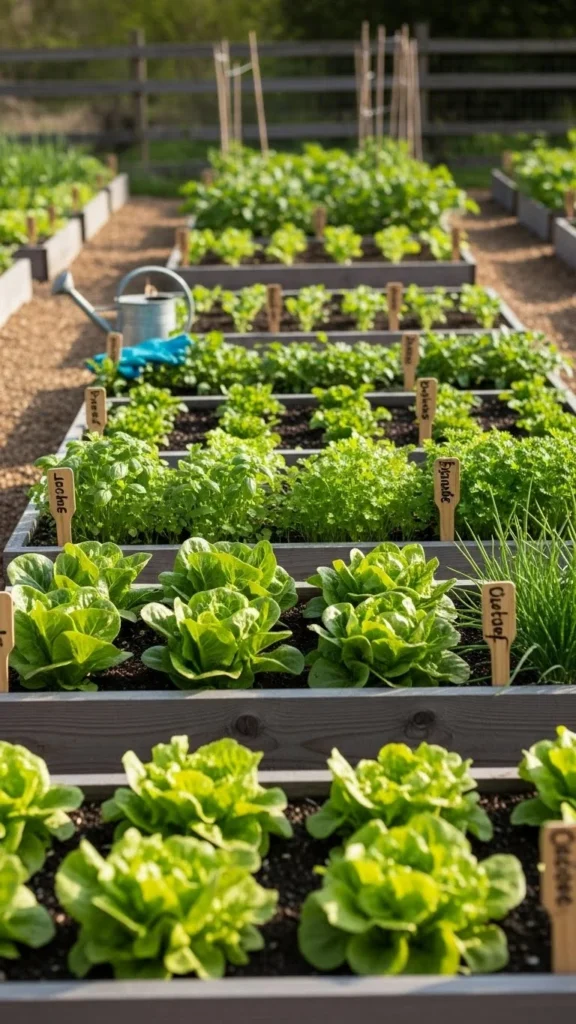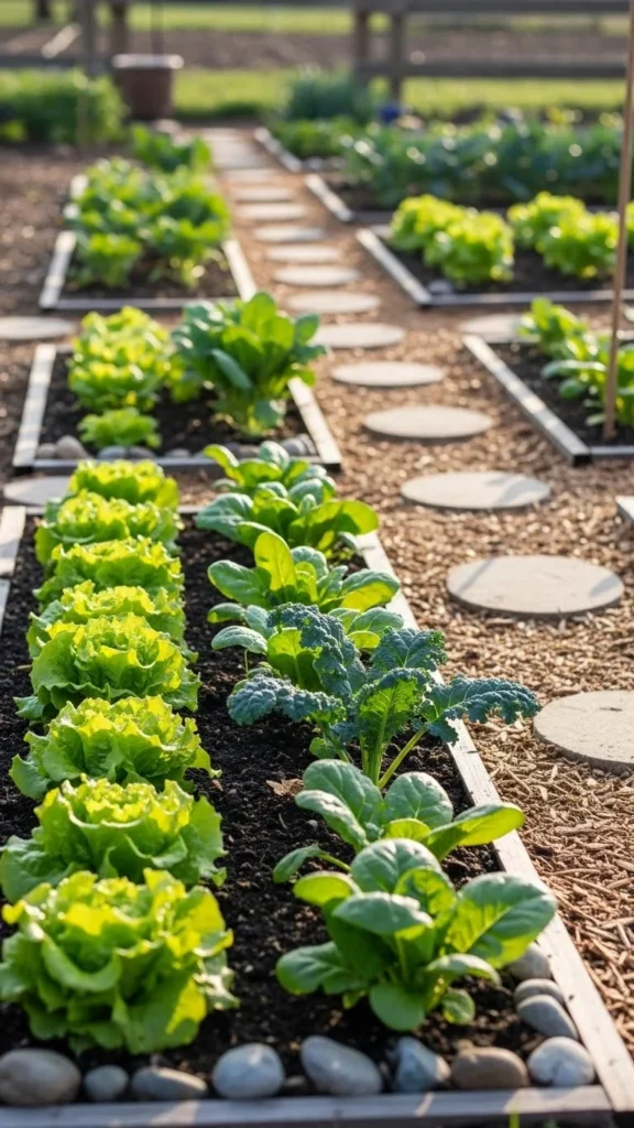 Leafy greens and root crops work well in blocks. This layout shortens watering time and keeps beds looking tidy.
