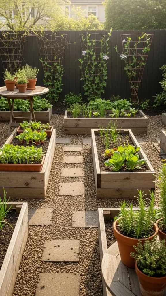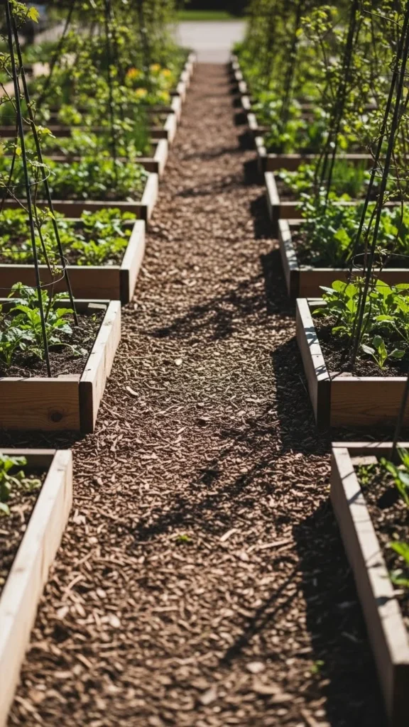 Defined paths keep feet off soil and improve access. Clear edges make beds easier to manage while using less ground overall.