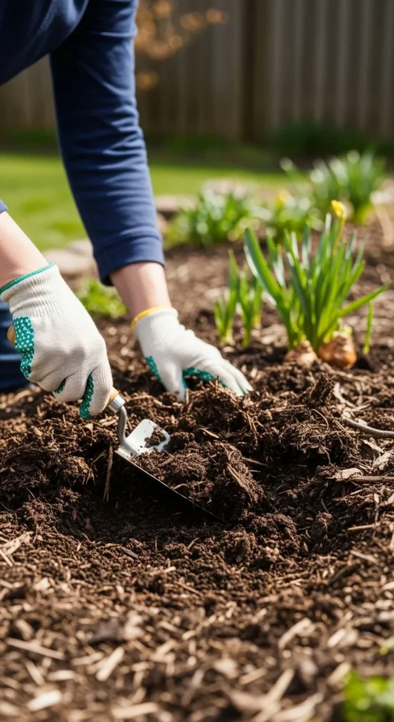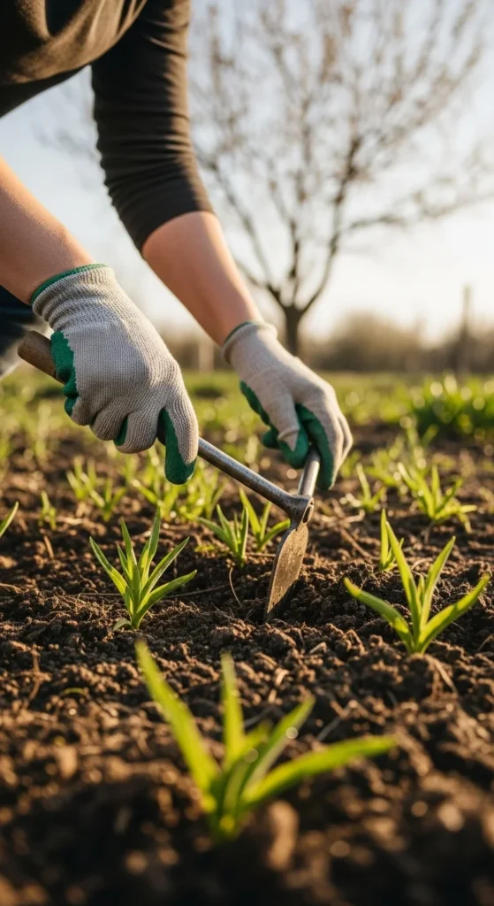 In areas with poor drainage, raised rows help roots stay dry. Pull soil gently into low mounds.