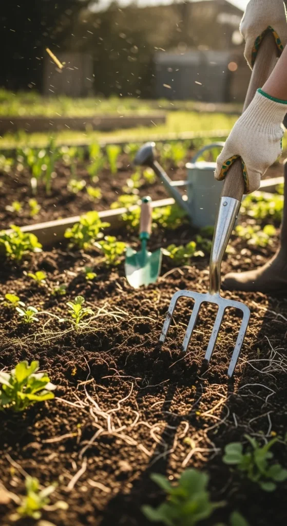 Avoid flipping soil layers completely. The goal is loosening, not turning everything upside down. This keeps soil life closer to the surface.