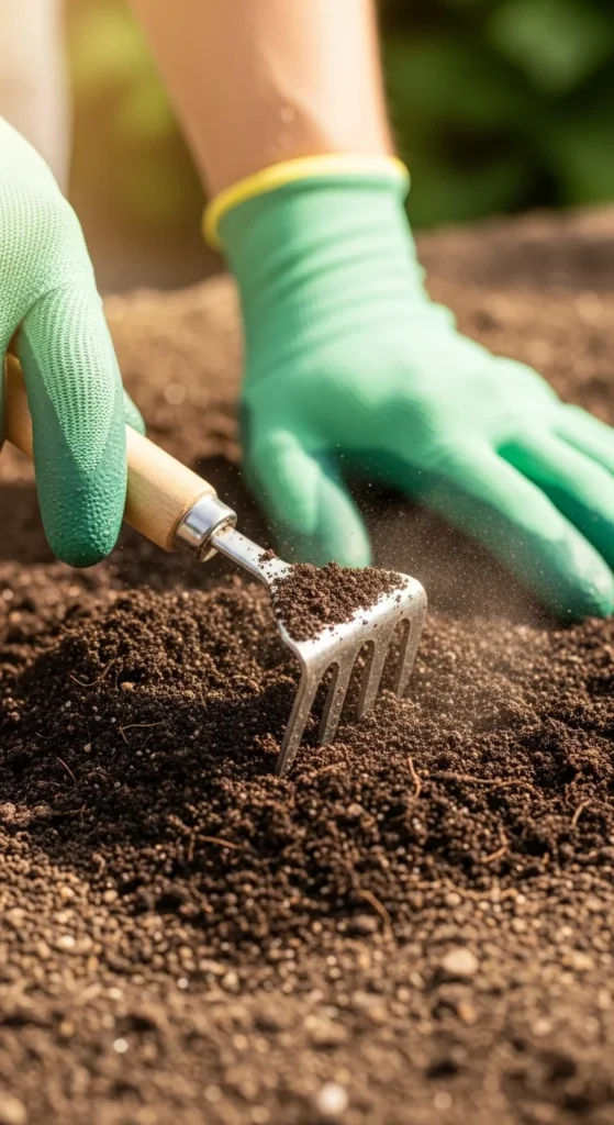 Working soil that is too wet causes compaction. This creates dense clumps that restrict root movement. Test soil by squeezing a handful. If it sticks together tightly, wait another day or two.