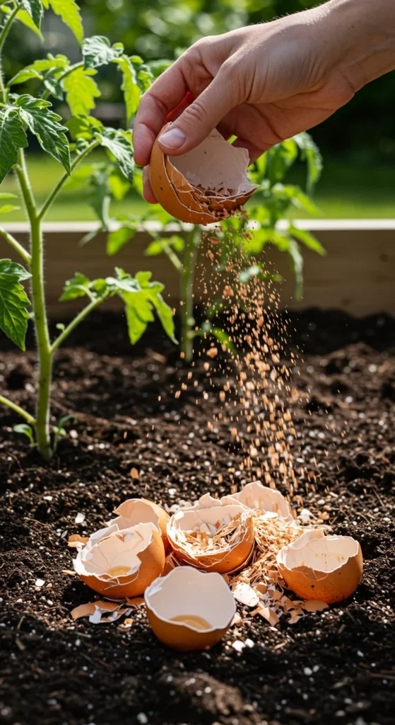 Save your eggshells instead of tossing them. Crush and scatter them into the soil around vegetables like tomatoes and peppers. Eggshells break down slowly, feeding calcium back into the soil. This helps prevent blossom end rot, which is common in fruiting plants. It’s a free and natural way to recycle kitchen waste while strengthening your crop.