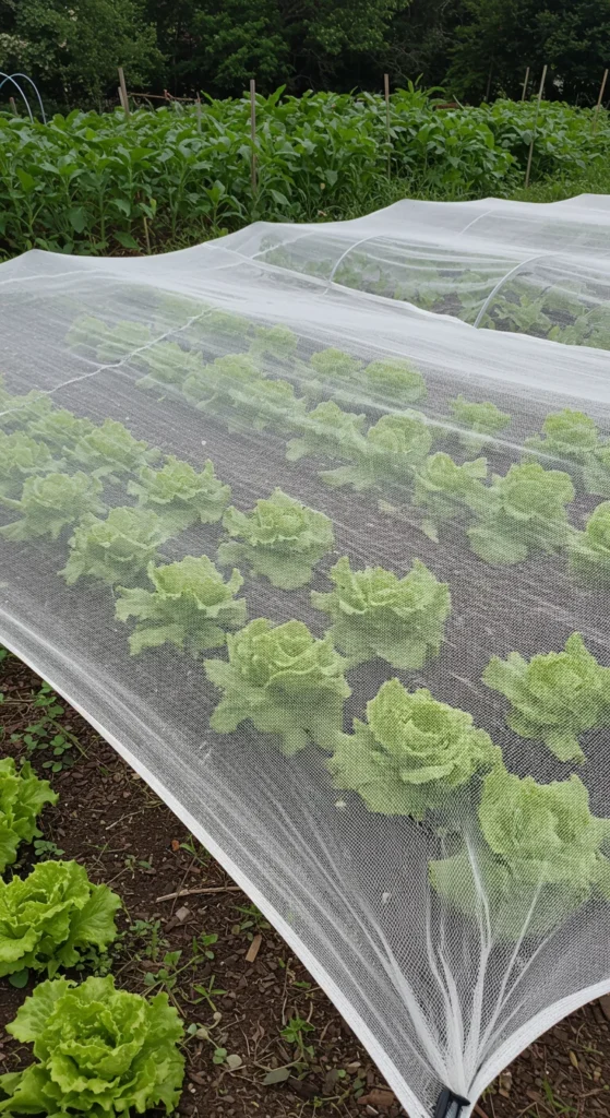 During extreme heat, vegetables like lettuce bolt quickly. Hanging shade cloth above them helps reduce stress. Use old sheets or purchase garden fabric—it doesn’t need to be fancy.
