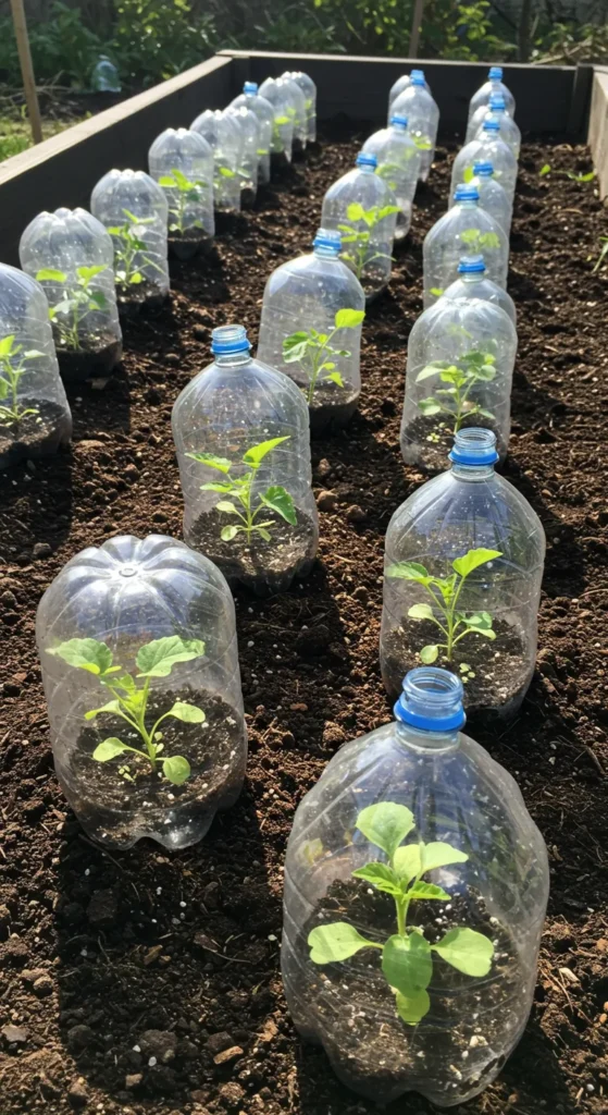 19. Reuse Plastic Bottles as Mini Greenhouses