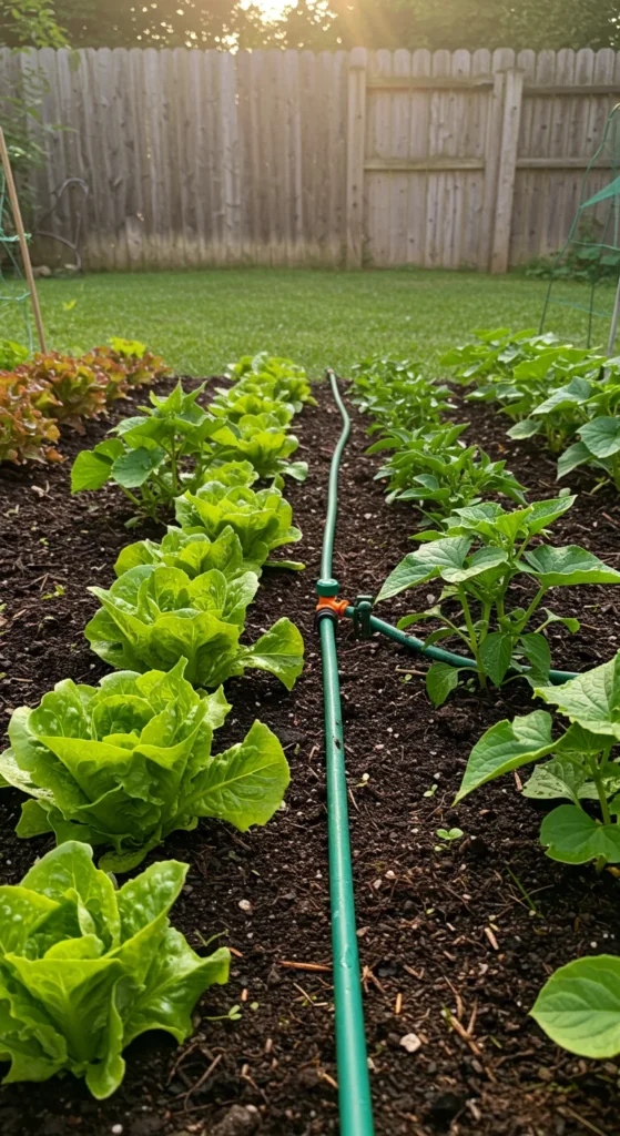 Instead of spraying from above, lay a soaker hose along your rows. This delivers water right to the roots, where it matters most. It reduces evaporation and keeps leaves dry, which helps prevent disease. Hook it to a timer for effortless watering.