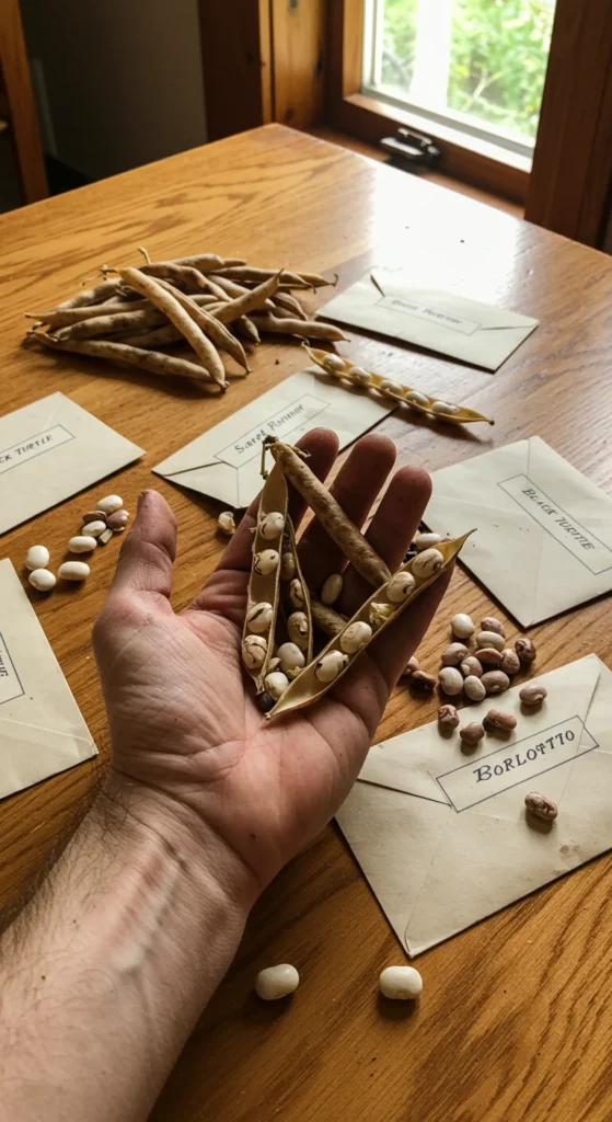 When harvesting, let a few plants go to seed. Collect and dry seeds from beans, peppers, or cucumbers. Store them in envelopes for the next season. This saves money and lets you adapt plants to your local conditions year after year.
