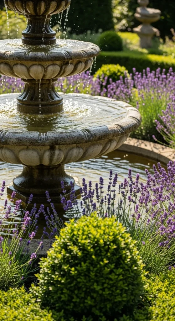 A stone fountain brings timeless charm to any space. Choose a simple tiered style for a soft trickling sound. Surround it with lavender or boxwood for a polished look. It’s easy to find pre-assembled models or lightweight resin versions that look like real stone. Keep a solar pump for energy-saving convenience and enjoy the gentle rhythm year-round.