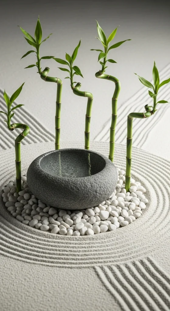A simple bowl of water can create deep calm. Place it among smooth stones or sand for a Zen effect. Add a single floating flower or candle for gentle visual balance.