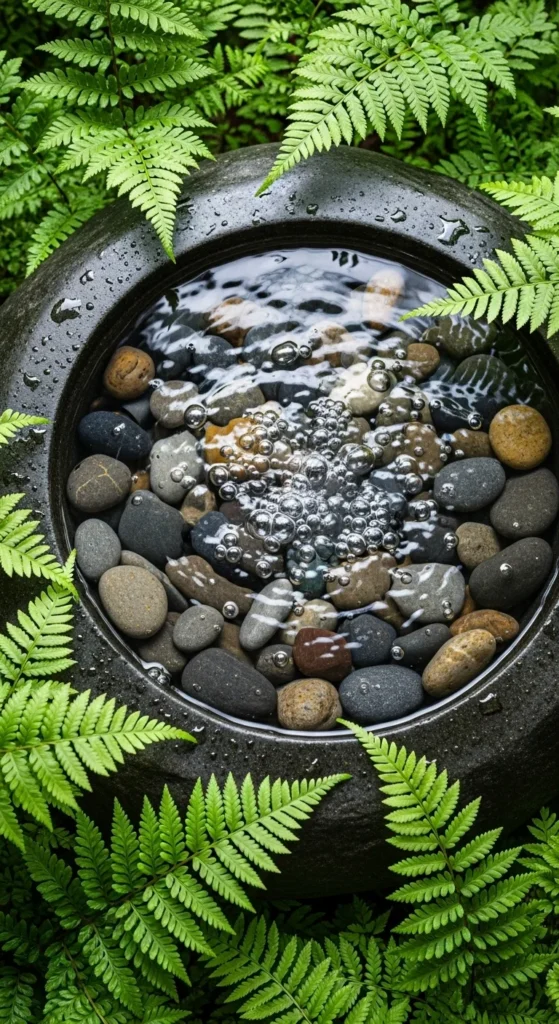 A pebble basin gives a natural look without taking up space. Hide the reservoir beneath the stones, letting water bubble through. It’s child-safe, easy to clean, and works well in shaded corners surrounded by greenery.