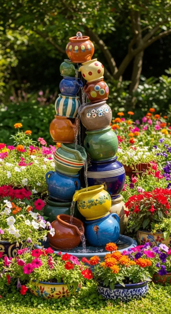 Reuse old pots to make a cascading fountain. Stack them slightly tilted so water flows from one to another. Seal the bottoms and use a small pump for circulation. It’s a fun DIY that adds personality and charm to any corner.