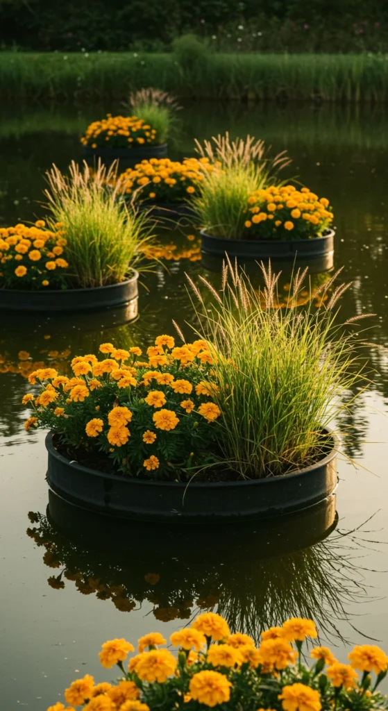Floating planters are a playful addition. Use foam or lightweight containers filled with flowers. Place them on ponds or large water tubs for moving bursts of color.