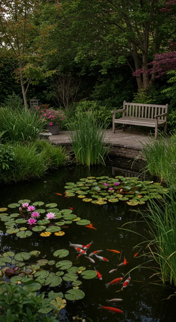 Dedicate a quiet corner for meditation. A reflective pond paired with bamboo or grasses creates the perfect Zen space. Keep it simple with still water and minimal decoration.