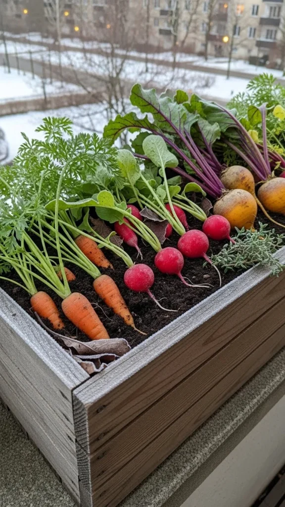 Window boxes offer enough depth for compact root vegetables. Plant small carrot varieties, radishes, or turnips. These crops grow well in cooler temperatures and don’t require deep soil. Place window boxes along walls or railings where the soil warms slightly during the day. Water lightly to avoid waterlogging. Plant seeds in intervals every two weeks for steady harvests. Window boxes also keep your balcony looking orderly.