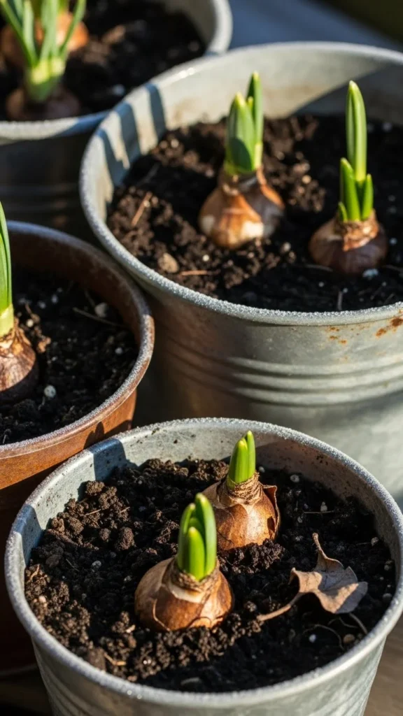 Recycled buckets offer a flexible planting solution. Drill drainage holes at the bottom. Fill with soil and mix in some compost. Add bulbs and cover with soil. Place the buckets along walls or fences where temperatures stay steady. If extreme cold arrives, move them into a garage or porch overnight. This protects bulbs without heavy work. Buckets cost little and stack easily when not in use. They also make it simple to rearrange color displays in spring. Water lightly and check soil moisture during dry spells.