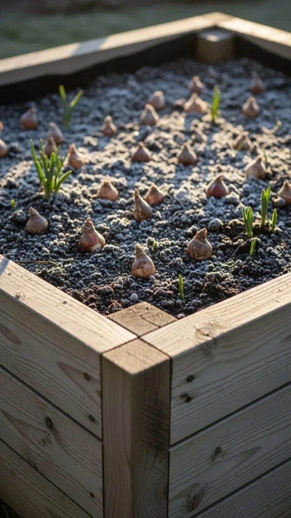 Raised beds warm faster than ground soil. This benefits bulbs that require early root activity. Fill your bed with loose soil that drains well. Mix in compost before placing bulbs. Space bulbs slightly closer than usual if your raised bed is shallow. This setup works for small lawns or patios where ground digging is limited. Raised beds also prevent waterlogging, which helps bulbs avoid rot during thaw cycles. If building a new bed feels expensive, repurpose old wooden crates or stack reclaimed boards. Keep an eye on moisture because raised beds dry faster. Add a light mulch layer if your area gets strong winter winds. When spring sun hits the higher soil, bulbs sprout earlier.