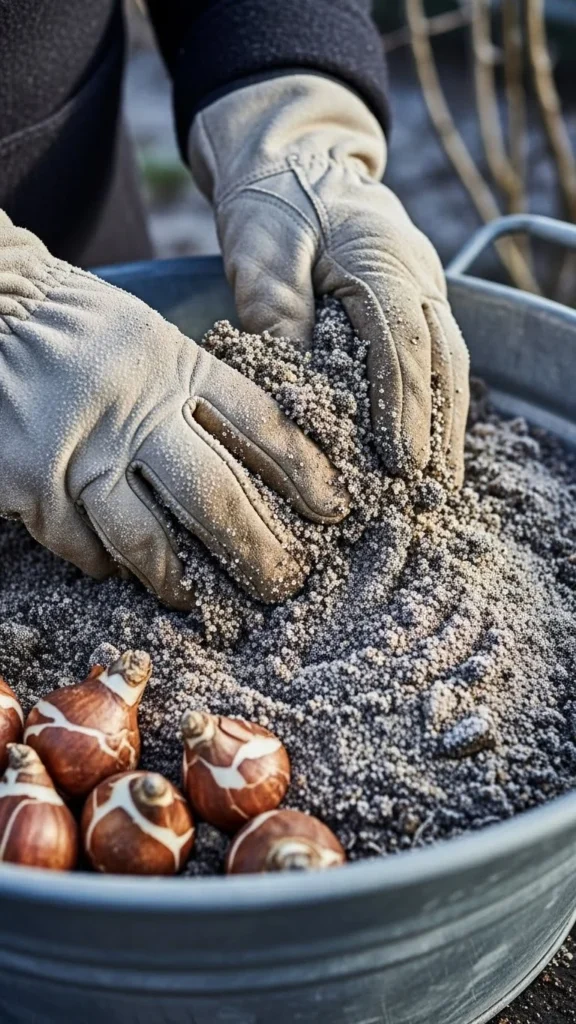 Bulbs dislike soggy soil. Adding coarse sand keeps water moving. Mix two parts soil with one part sand. This creates a lighter texture that helps roots spread. It’s an easy fix for clay-heavy yards. Sand also helps bulbs settle evenly when the temperature shifts. If buying sand feels expensive, use leftover paver sand from old landscaping work. Plant bulbs slightly deeper when using a sand mix because the soil settles more. Water gently after planting, since sand drains quickly. In spring, blooms often come out stronger because the roots develop well during winter.