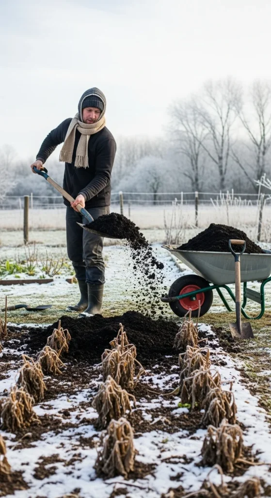 Compost acts like a warm, nutrient-rich blanket. Spread a thin layer over your soil before the ground freezes. It insulates roots while slowly releasing nutrients all winter. By spring, your soil will be rich and ready for planting again.