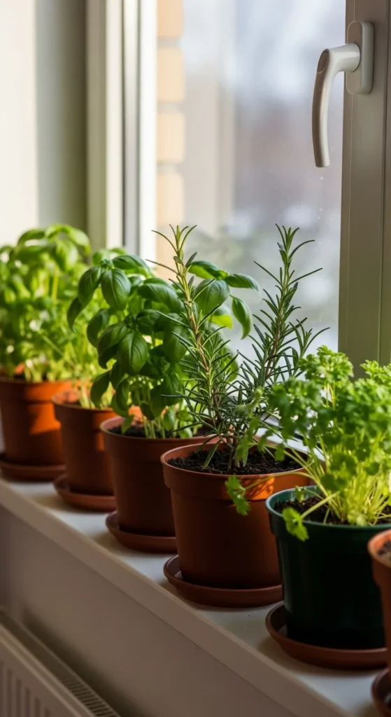 Herbs like basil and rosemary don’t handle frost well. Move them indoors near a sunny window. Use containers with good drainage and mist them lightly if air is dry. A kitchen windowsill is perfect—you’ll have fresh herbs even in the coldest months.