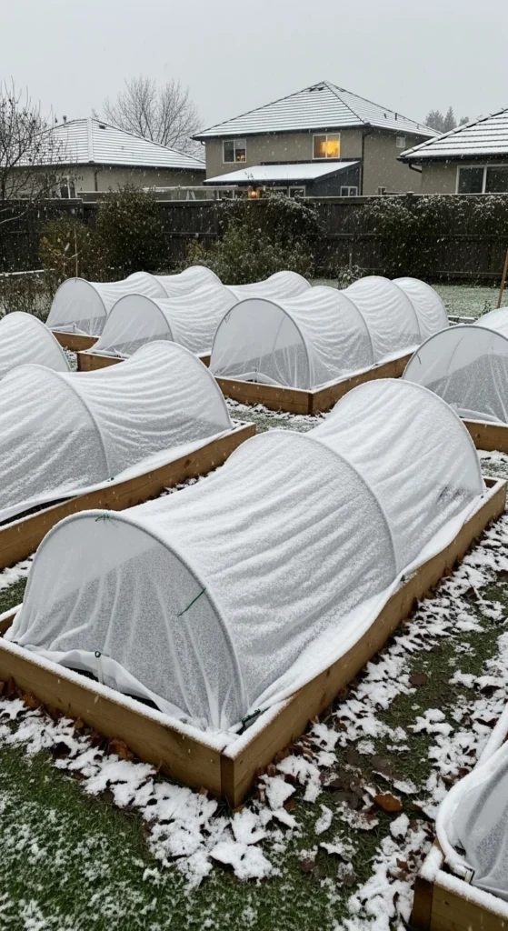 Raised beds freeze faster than in-ground gardens because air circulates around them. Protect them with frost blankets or temporary lids. You can even cover beds with cardboard during cold nights. Combine this with mulch for double protection against freezing.