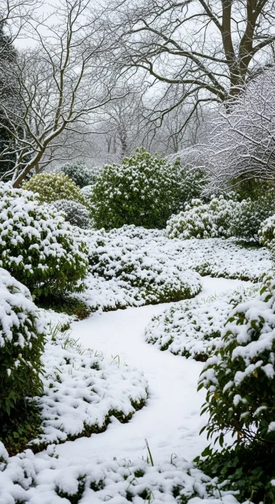 A light layer of snow actually protects plants by acting as insulation. Don’t rush to remove it unless it’s too heavy. Snow traps warmth and prevents temperature swings. Just gently brush off branches that may bend under weight.