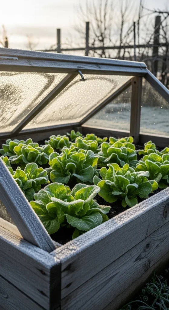 Cold frames trap sunlight and warmth, creating a mini greenhouse effect. Build one from scrap wood and an old windowpane. Place it over cold-tolerant crops like spinach, kale, or lettuce. During sunny days, open the lid for airflow. Close it before nightfall to retain heat. Cold frames extend your harvest and protect delicate plants from frost.