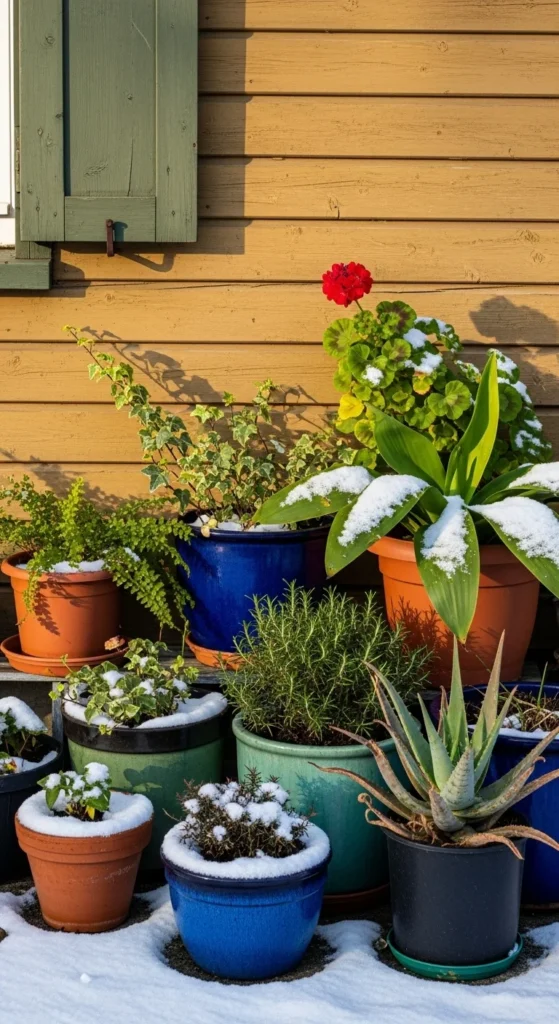 Group containers closely to share warmth. Place them near walls or fences that absorb daytime heat. Add straw or blankets around the base for extra insulation. This small arrangement can raise the temperature just enough to keep roots from freezing solid.
