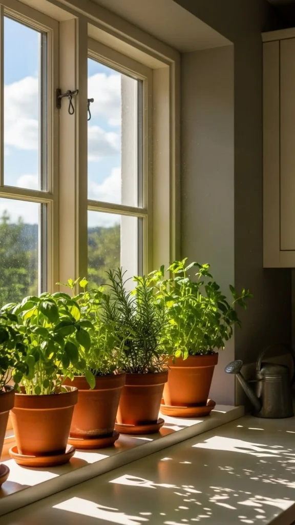 Herbs love sun, even indoors, so placing them in a south-facing window helps them stay healthy through winter. The angle lets in bright light most of the day. If your kitchen doesn’t have this type of window, pick the brightest spot you can find. Even a small patch of sunlight is helpful. Rotate your pots every few days so all sides stay even. This simple habit keeps herbs from leaning or growing thin. If sunlight is limited in your home, add a low-cost clip-on lamp. Many budget lamps work fine when placed close to the plants. Keep your herbs away from cold drafts near doors. They handle warmth better than chill. Choosing the right window early helps your indoor garden thrive without extra effort.