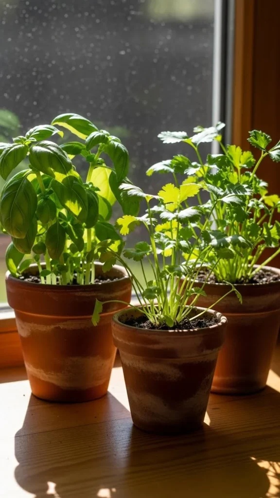 Small pots help control how much water your herbs get. Big pots hold extra soil that stays wet too long during winter. This can cause drooping or yellow leaves. Smaller containers dry more evenly. They reduce the risk of soggy soil. You can reuse mugs, jars, or old food containers to save money. Just poke holes in the bottom for drainage. Place a small tray underneath to catch extra water. This keeps your counters tidy. Using small pots encourages quick adjustments because you can see issues early. Herbs like basil and cilantro respond well to this setup. If a pot cracks, swap it quickly without disturbing other plants. Keeping your collection simple makes care easier, especially when days feel rushed.