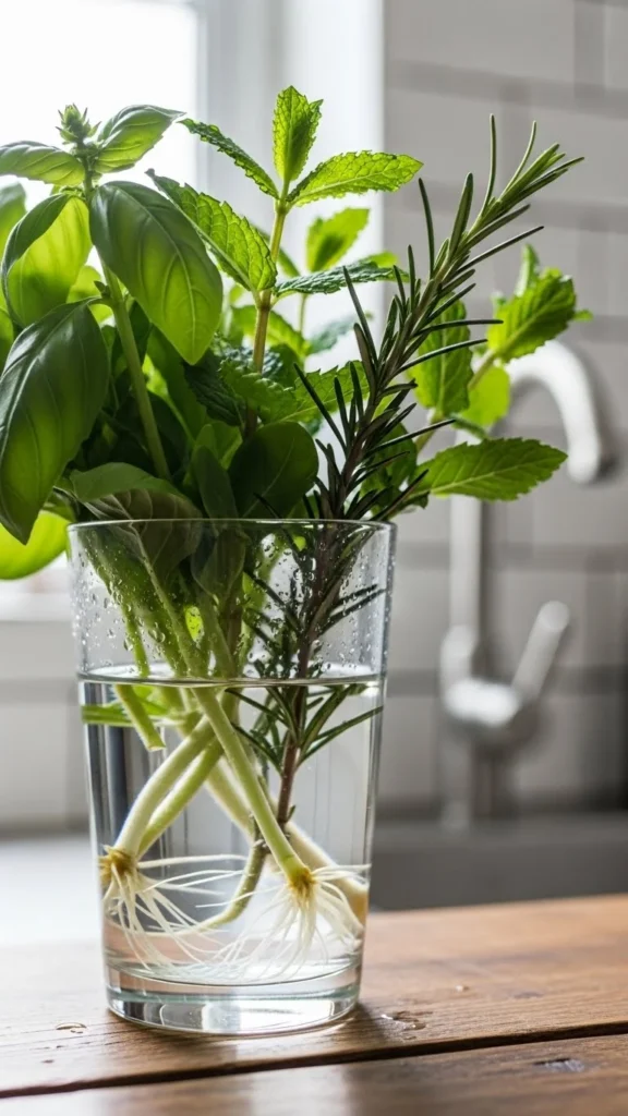 Some herbs regrow easily from scraps. Place green onion or mint stems in a glass of water. Change the water every few days. Soon roots begin to form. Once you see enough roots, plant them in soil. This method costs almost nothing. It’s great for kids or beginners. Keep the glass near a window for faster growth. This trick extends the life of store-bought herbs.
