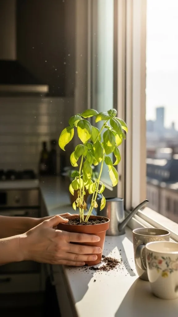 Cold water shocks herb roots in winter. Use slightly warm water instead. Not hot—just comfortable to the touch. This helps soil absorb moisture gently. Herbs stay calmer and recover quickly. Keep a small container of water on the counter so it reaches room temperature. This simple trick prevents leaf stress. It works well for basil, parsley, cilantro, and mint. It’s an easy habit with clear benefits.