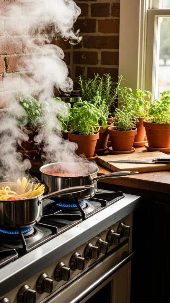Cooking steam feels warm but harms indoor herbs. Heat from boiling pots shocks leaves and makes them limp. Keep herb containers on a counter away from the stove. Choose a corner that gets steady light instead. If your kitchen is small, place herbs on a shelf above eye level. This keeps them out of the way but still close enough for cooking. You can also move the herbs temporarily while cooking if you notice leaves drooping. If steam exposure becomes a habit, herbs decline quickly. Making thoughtful placements helps your plants stay strong all winter.