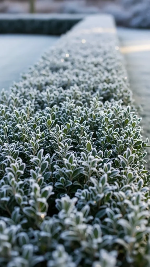 Low structural plants such as dwarf conifers, sedge, or low-growing junipers create clean edges that guide the eye. They help define the border and keep it tidy. These plants work well along pathways or the front of beds. Their tidy outlines remain visible even when snow falls. Pair them with taller dried stems behind to create a strong layered effect.