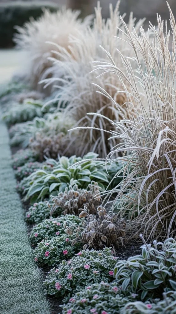 Tall grasses bring height and soft motion to winter borders. Their seed heads catch frost beautifully, adding sparkle during cold mornings. Choose grasses like miscanthus, feather reed, or switchgrass. Plant them toward the back of the border so they anchor the layout. Even when snow settles, their upright habit holds. Pair them with evergreen shrubs or dried perennial stems for contrast. Trim them only in late winter to maintain structure. If your border feels flat, adding two or three clumps of tall grasses immediately brings depth and elegance.