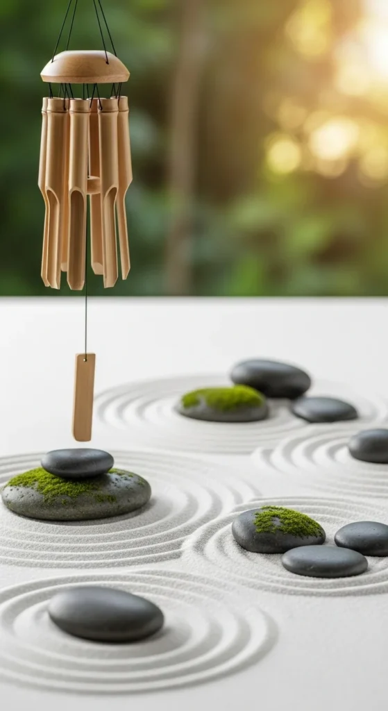 Sound can be healing. Add bamboo or metal wind chimes to create soothing tones with every breeze. Hang them near entryways or sitting areas. The gentle music pairs perfectly with your tranquil scenery.