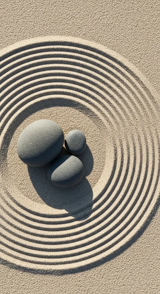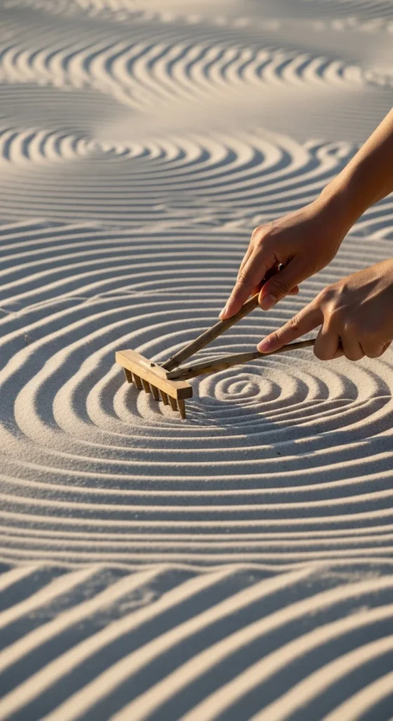 Zen is about flow and repetition. Try creating ripple art in sand as part of your mindfulness routine. Rake circles around stones, change the pattern daily, and notice how your thoughts settle. It’s calming and meditative.