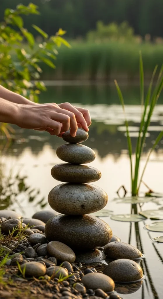 Stacking stones is a timeless meditative act. Each layer represents patience and focus. You can make your own mini cairns near water features or paths. Just keep them balanced — not perfect. It’s the process that soothes.