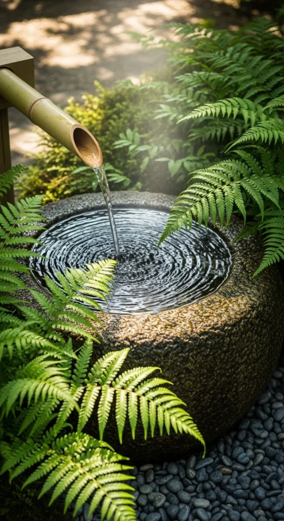 The sound of flowing water instantly calms the mind. Add a simple bamboo fountain to your garden using a recycled bowl and pump. It brings movement and life to the stillness of gravel and stones. For small patios, choose solar-powered pumps to keep it eco-friendly.